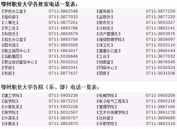 公辦全日制高等職業(yè)院校電話:0711-3862548